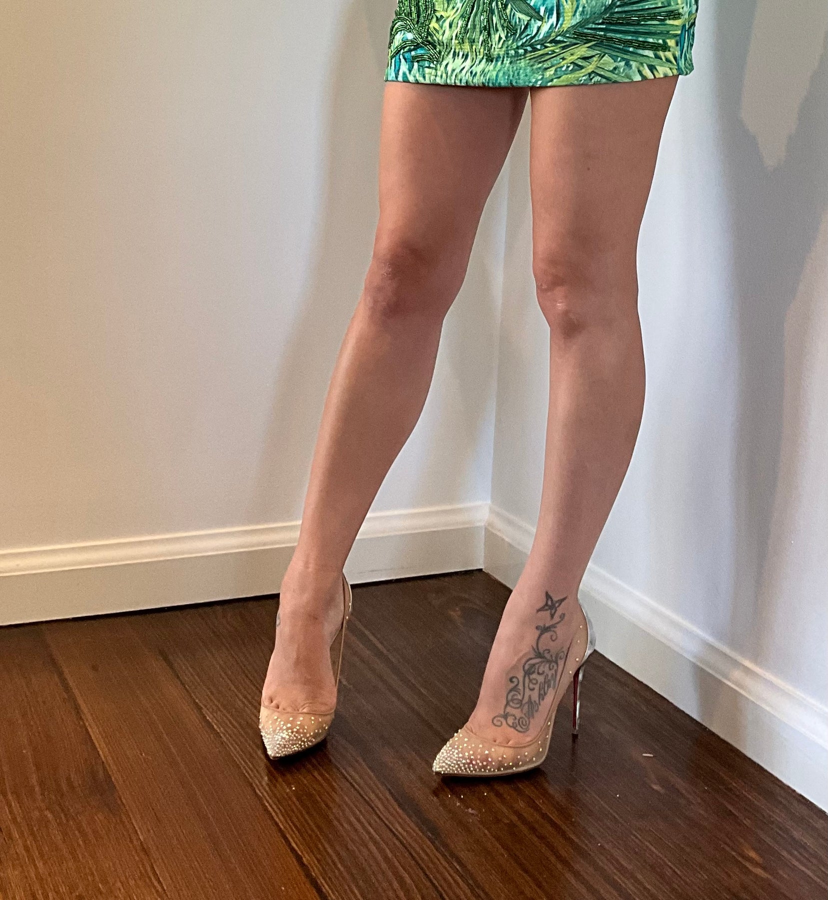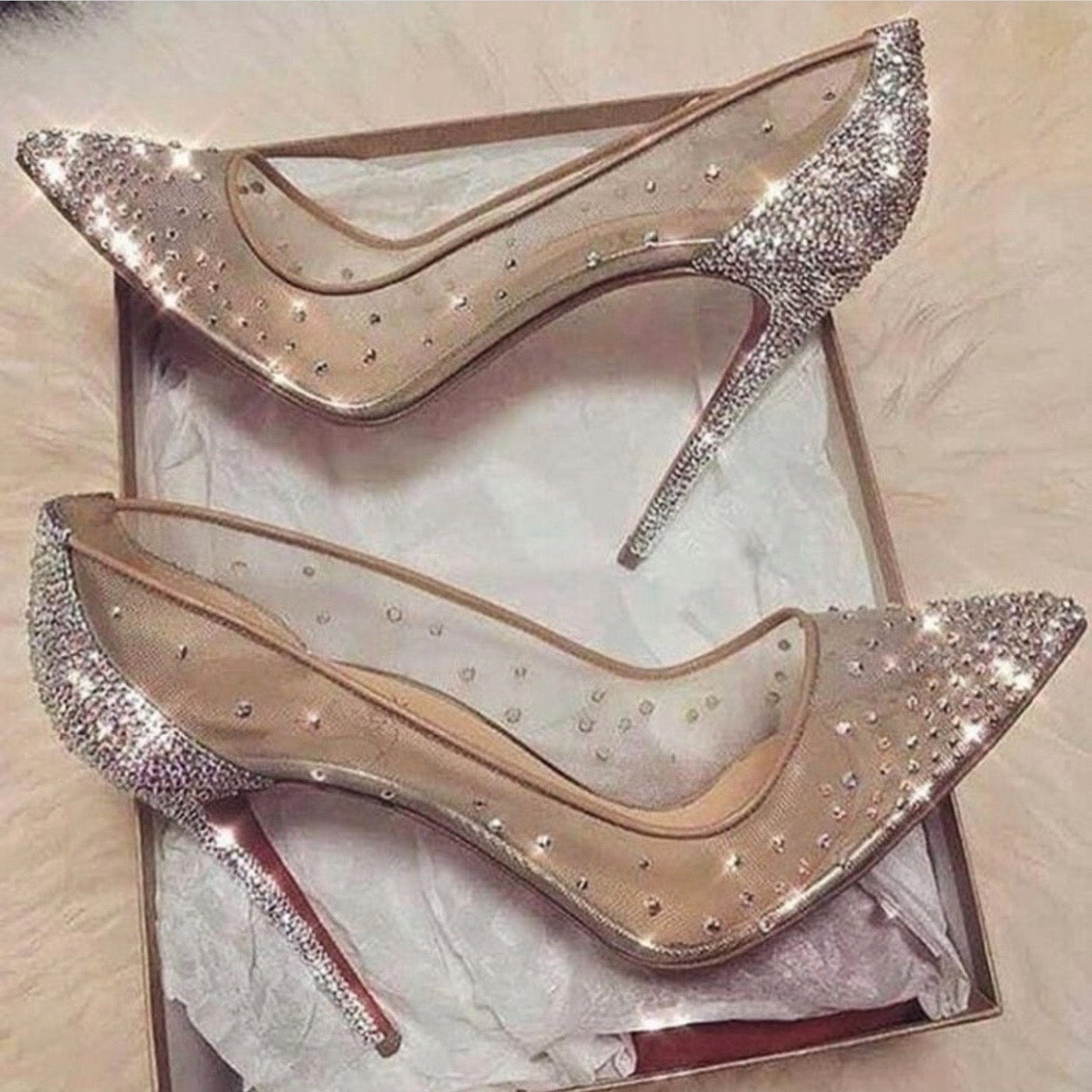 A real-life glass slipper, the Follies Strass really makes a statement. A classically shaped stiletto with a 100 mm elegant heel, this iconic pump is adorned with hand-placed shimmering strass from toe to tip. Beneath the myriad of strass, the vamp is crafted from mesh, a nod to Christian Louboutin’s love of transparency. The unmistakable pop of red graces the bottom of every Christian Louboutin creation.